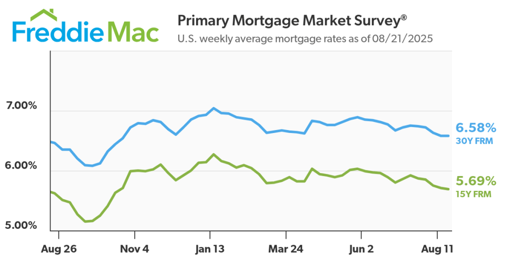 The graph below is the weekly rate averages over the past year for 15 & 30 year fixed rate mortgages as provided by Freddie Mac.